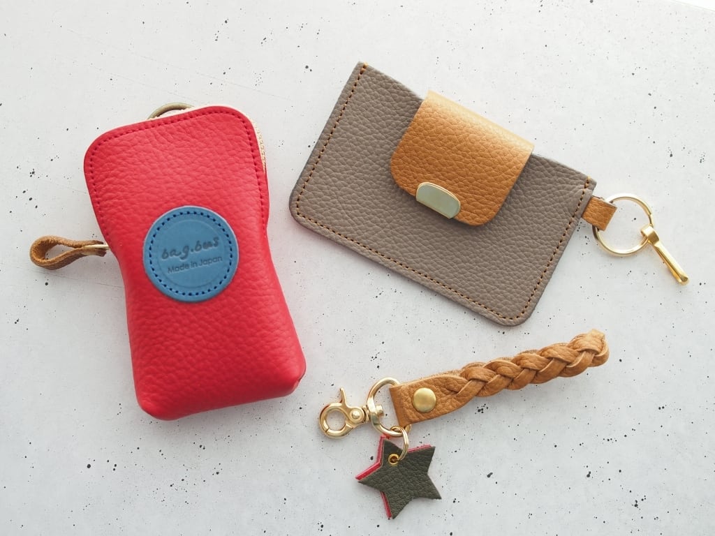 bag.busで人気のレザーキーポーチ、キーリング付きシンプルカードケース、ループスターレザーストラップがワンセットとなった単品購入よりもお得な3点セットです。