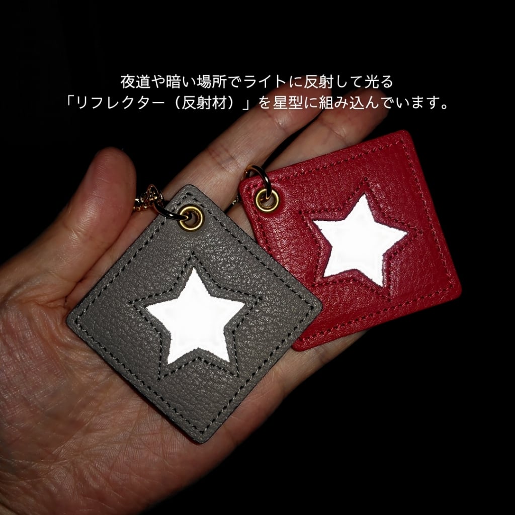 【夜道の不安解消へ】『ワンスターレザーチャームキーホルダー』大人のための本革製・反射材(リフレクター)キーリング